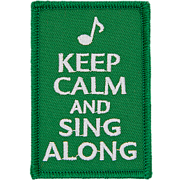 Don't be alarmed; keep on singing. The Keep Calm and Sing Along patch is a quick and easy way to show everyone around you just how much you love singing along. Or that you've been dragged to Karaoke night.