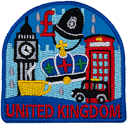Have you taken a trip to Great Britain to see the sights and tour the world? Then this patch is for you! This patch displays a wide variety of United Kingdom cultures, including the royal crown, Big Ben, Windsor Castle, a British phone booth, a cup of tea, a taxi, raindrops, the symbol for the UK's currency (the pound), and a police hat.